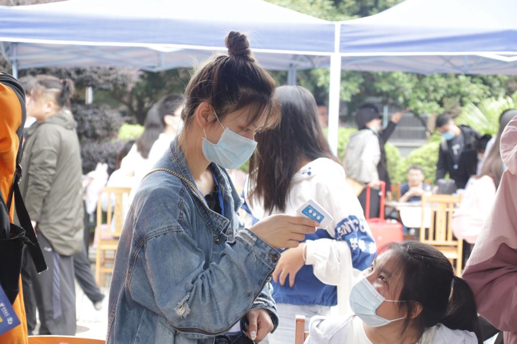 新生报到工作安排严格遵守疫情防控要求,新生经行李消毒、测量体温、身份确认、扫健康码、行程码等环节后方可到迎新点报到、办理入学手续。迎新现场还设有体温复测、应急处置点、临时隔离点,以备突发事件应急处置。