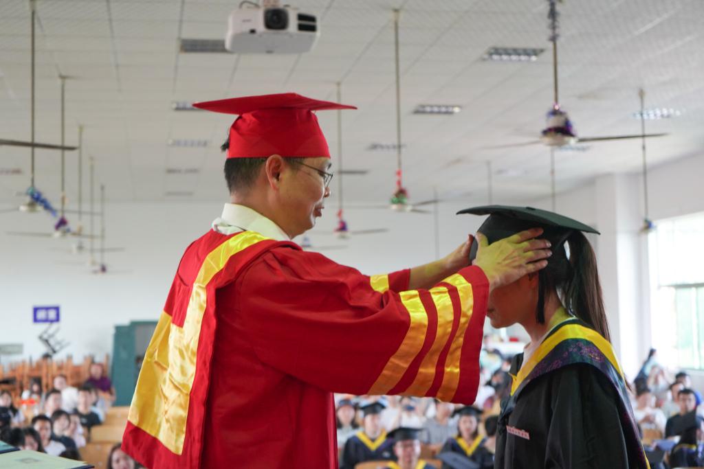 黎娅宣读BETWAY官方网站省市校级优秀毕业生表彰文件,BETWAY官方网站37人被授予省级优秀毕业生,32人被授予市级优秀毕业生,102人被授予校级优秀毕业生。现场领导为优秀毕业生颁发荣誉证书,为毕业生代表颁发毕业证书,李光中为毕业生代表正冠,拨穗,授予学位证书。