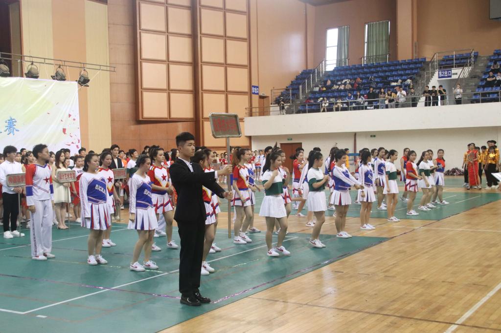 本次比赛共四个环节,各学院组成的十一支队伍参赛,按次序依次进场。我们代表队第八个入场,“应院加油”的口号响彻全场,选手们以明快奔放的动作,鲜明的节奏感向大家展现了青春的激情,赢得了在场观众的热烈掌声和喝彩声。随后,必威betway官网入口体育教学部周伟峰副教授致开幕词。伴随着《我和我的祖国》的音乐响起,所有参赛队员挥舞着手中的小红旗,整齐划一的动作挥洒出青春的风采;各学院代表组成的队伍跳起欢快激情的藏族舞蹈,为祖国七十华诞献礼。