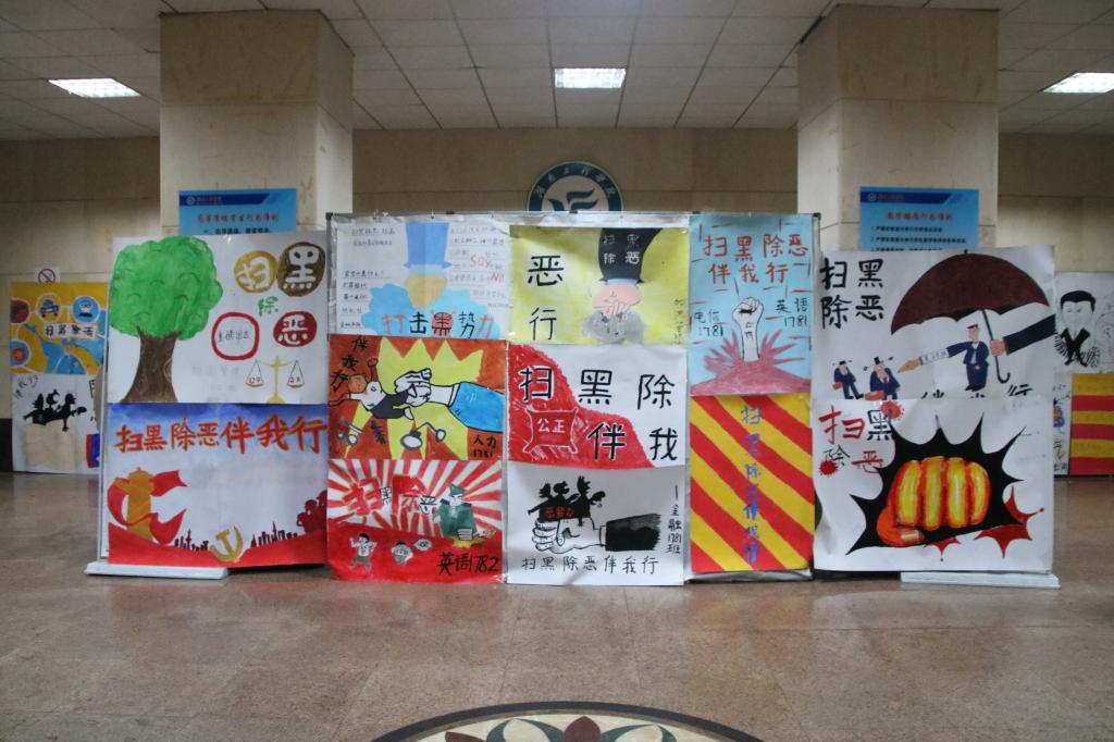 活动前各班级纷纷贴出各自精心设计的海报,优秀的海报放在一楼大厅进行展示。活动开始,同学们通过观看《社会主义有点潮》的视频来加深对活动主题的理解。紧接着各班围绕主题开展了形式多样的活动,同学们热情高涨,积极举手回答,对此次团日活动表现出浓厚的兴趣。电气1883班、英语1881班采用PPT的形式向大家展示活动主题及扫黑除恶的重要性,以身边的典型事例,图文并茂地让同学了解了当前黑恶势力对社会带来的极大危害,教给同学们同黑恶势力作有效斗争的方法、策略,同学们积极参与,现场气氛热烈。