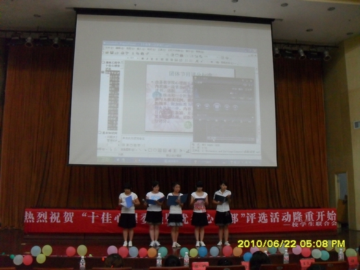 6月22日下午3:00,学校“十佳心理委员暨优秀心理部”评选活动在主校区(新)图书馆一报告厅举行。经过各学院心理咨询部门的集体节目表演、心理健康知识问答和心理委员们的工作交流等三个环节之后,我们学生会心理咨询中心被评为学校“优秀心理部”。