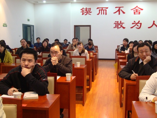 根据培训班安排,我们党总支书记李宏祥作了题为《认真做好大学生党员发展工作,充分发挥党员的先锋模范作用》的先进经验介绍。首先,李书记就我们学生管理的现状和特点进行了简要的分析,并结合实例详细介绍了我们的学生管理工作。他指出:我们学生辅导员仅9人,学生人数却有5100人,管理成本之高,难度之大,显而易见,但这样的现状也让我们更加坚定了信念,一定要把学生管理工作做好,把党务工作做好。接着,李书记就如何加强学生党员发展和管理工作介绍了我们的基本做法:第一,结合实际,从思想上高度重视学生党员发展工作;第二,健全制度,严格按照组织程序发展党员;第三,加强管理,全面发挥学生党员先锋模范作用;第四,落实责任,扎实推进党员发展和学生管理工作。最后,李书记从四个方面介绍了我们学生党员发展工作的基本经验:一是坚持“两条腿走路”;二是党员发展数量和质量并重;三是坚持“以人为本”,充分相信党员,积极发挥党员作用;四是重视程序和制度,保证各项工作顺利开展。李书记在结束语中总结道:“哪里有群众,哪里就有党的工作;哪里有党员,哪里就有党组织;哪里有党组织,哪里就有健全的党组织管理制度”。