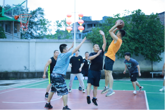 7月7日晚,我们学生志愿者代表队与锦石乡居民代表队展开了一场精彩的篮球友谊赛。