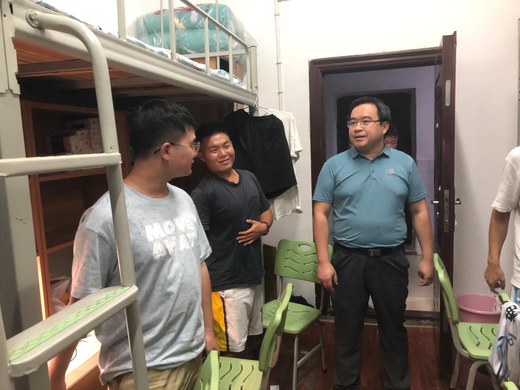 新学期开学伊始,为全面了解学生生活、学习情况,推动师生共处、因材施教的“一站式”学生社区建设,深化“三全育人”建设,9月5日晚,必威betway官网入口学生工作处处长徐粤宇,BETWAY官方网站党委副书记、院长张何,党委书记黎娅,党委副书记陶连洲,带领学院全体辅导员老师来到学生宿舍进行实地检查。
