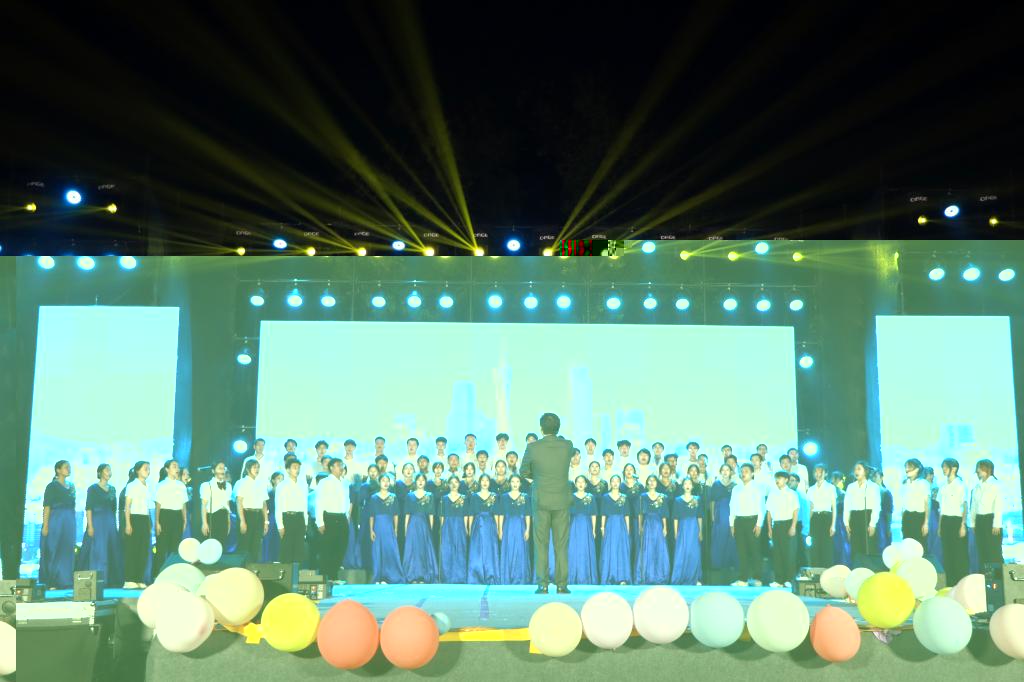 最后一曲全场大合唱《东方之珠 强军战歌》响彻夜空,激昂的旋律传递着家国情怀与青春担当。晚会在主持人“愿2025级新生乘风破浪,不负韶华”的祝福声中圆满落幕。随后,校领导、嘉宾与全体演职人员登台合影,快门声里,星光、笑脸与校旗同框,把这一夜永远定格。