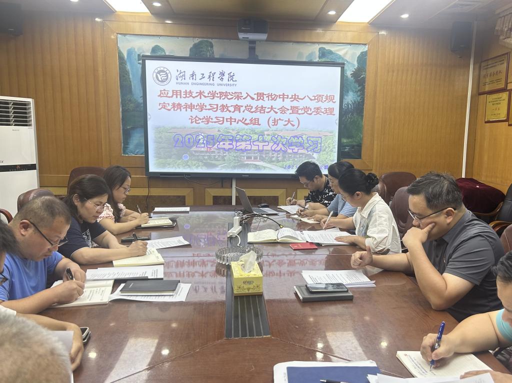 9月17日,我们深入贯彻中央八项规定精神学习教育总结会暨2025年党委理论学习中心组第十次(扩大)学习在办公楼207会议室举行。院党委书记严明主持学习,院党委理论学习中心组成员、全体教工党员、教职工参加学习。