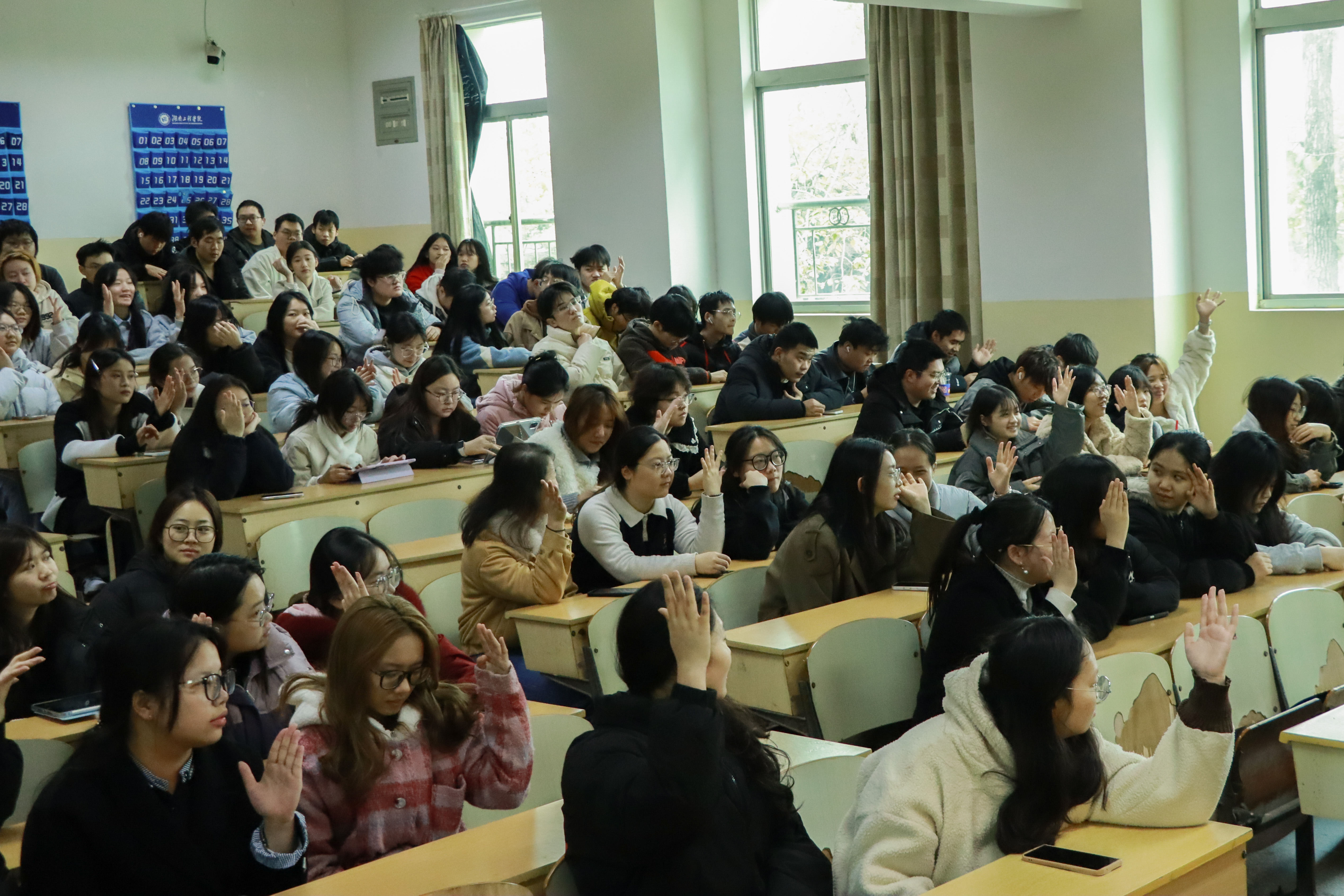 任宁宇结合当下就业形势,解析了2025年全国高校毕业生超1200万的就业压力,从我们专业布局与就业基本情况,分析了不同专业的就业适配度与竞争压力,针对机械、电气、经管等核心专业,指出地产、制造、互联网等行业的岗位收缩现状,重点拆解了应届生进入体制内的8大考试机会,包括国考、湖南省考、湖南烟草专卖局招录、事业单位考试等,详细介绍了各考试的招录时间、报考条件与岗位特点,通过表格直观展示了全国各省公务员收入水平,以及国考各部门的优劣势。同时,任宁宇也对考研赛道的备考规划、专业选择与就业衔接进行了分析,强调双赛道准备能为应届生拓宽发展空间。讲座结束前进行了现场互动,同学们积极参与。